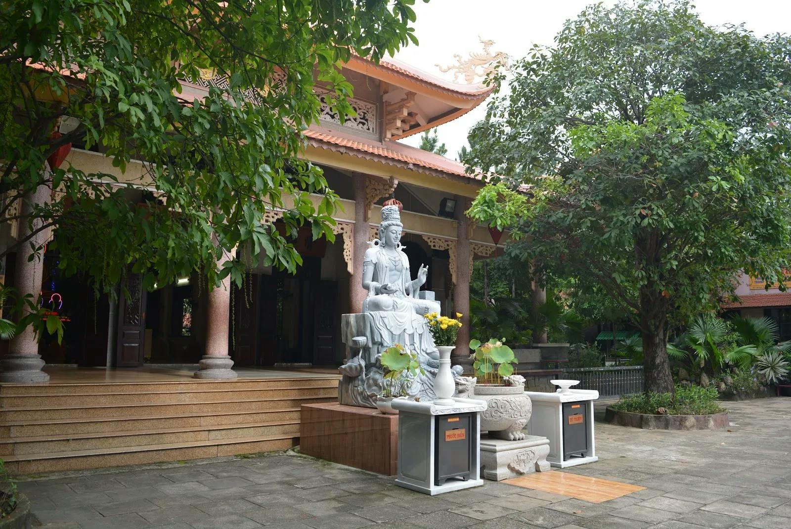 Khuôn viên chùa rộng lớn, xanh mát, yên bình. Du khách sẽ cảm thấy nhẹ nhõm và yên tâm khi đặt chân đến đây. Không chỉ là nơi linh thiêng để cầu phước, chùa còn là địa điểm lý tưởng để thực hành thế giới an lạc và tìm hiểu về đạo Phật. Ngoài việc tham quan chùa, du khách còn có thể tham gia vào các hoạt động tâm linh như cầu nguyện, thắp hương và học Phật pháp. Nơi đây sẽ giúp du khách tìm được sự bình yên và sự thanh thản trong tâm hồn sau những ngày làm việc căng thẳng.